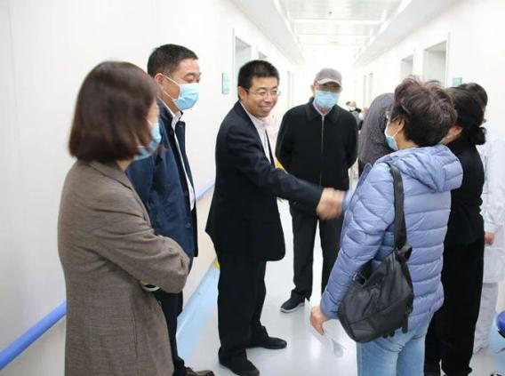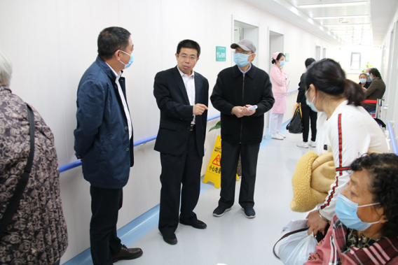 体检当天,院长曹晓强、党委书记胡进锋、工会主席王中全来到体检中心健康体检现场看望老领导、老同志,深入现场了解老同志的身体健康状况,耐心倾听老同志的需求和建议。